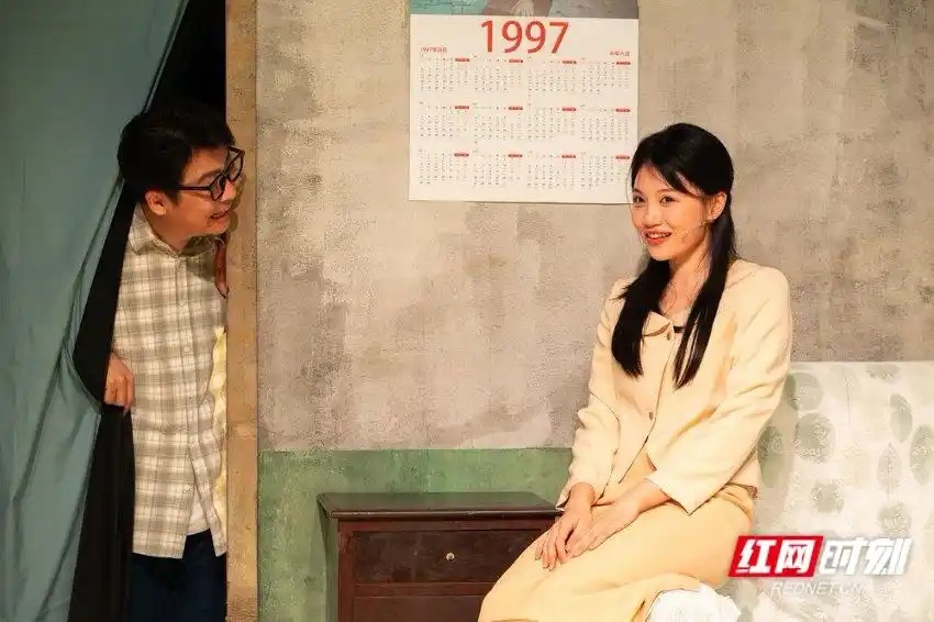 演出现场。红网时刻新闻4月26日讯(记者 陈雅如)4月25日,后湖·戏码头演艺新空间首部沉浸式互动街区戏剧《长沙》完成内测演出,将于5月1日正式启幕。该剧位于湘江新区岳麓山大学城后湖园区,记者现场体验了一次“掀开布帘、回到九十年代”的观演之旅。暖风轻拂的后湖边,一栋裹着工业脚手架的小屋静立。掀开入口布帘,眼前不再是剧场观众席,而是一条还原度极高的老长沙街巷。竹椅、粉店、歌舞厅、阳台、出租屋……不同场景共存在同一片空间。观众踏入的第一秒,就成了这条街上的“老街坊”。