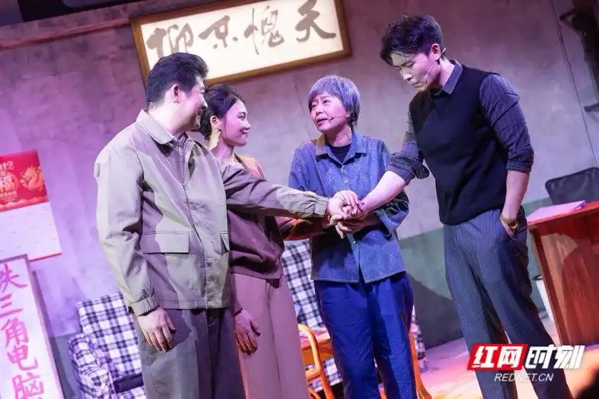 演出现场。岁月老去,巷子即将消失。在生命的最后时光里,胡大姐用她全部的热辣与温柔,如解开一团乱麻,抚平了所有人心上的皱褶。激烈的争吵、无声的守护、刻骨的遗憾,最终都融化在一碗粉、一句家训和一声久违的“朋友”里。离开与重逢、遗憾与牵挂交织在一起,几乎击中了在场的每一个人。老街坊们看着孩子们一天天长大,也看着长沙城一天天变了模样。全剧没有刻意煽情,却让记者与观众几度落泪。